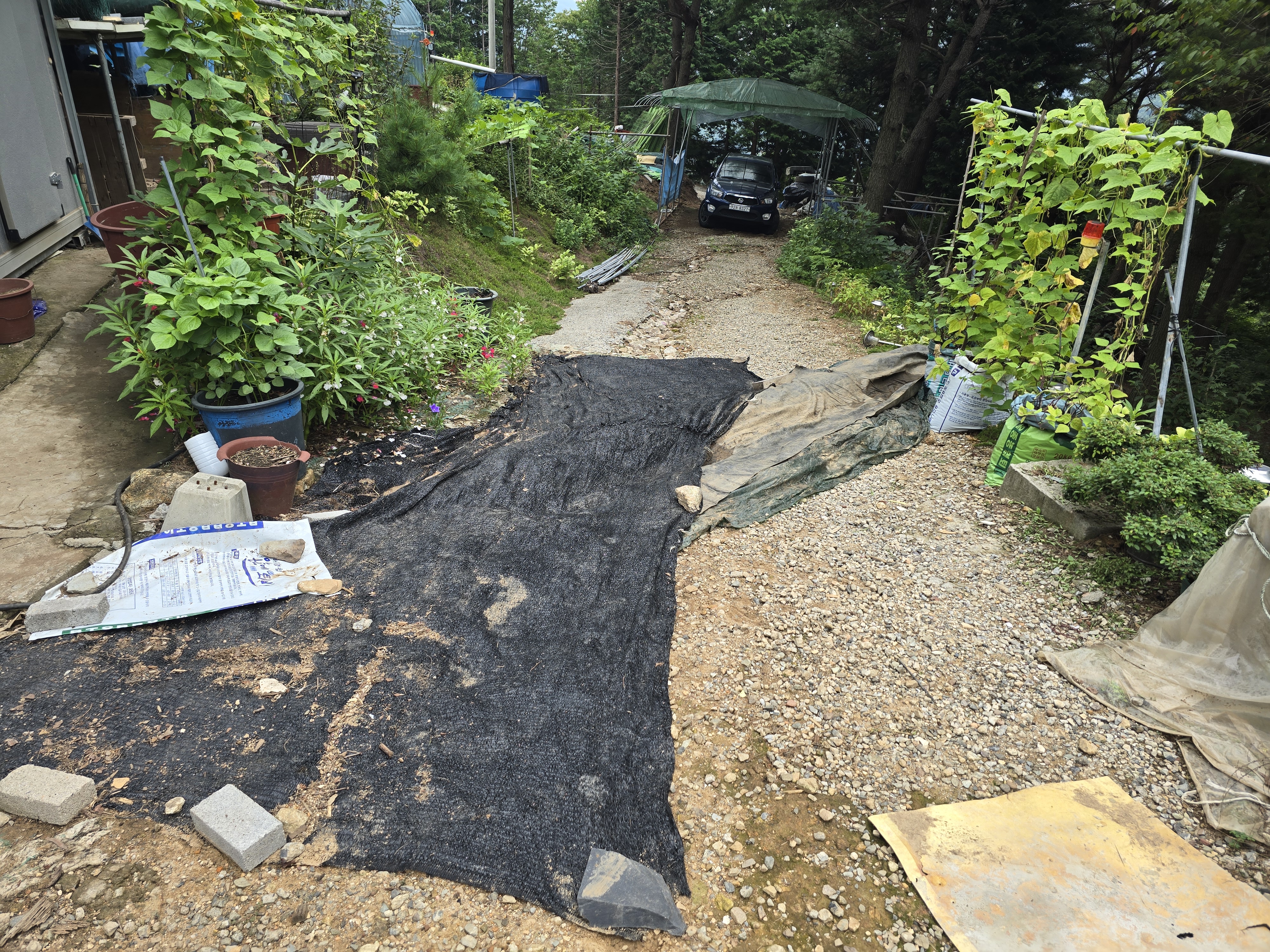 골 위에 비닐과 제초매트를 씌워