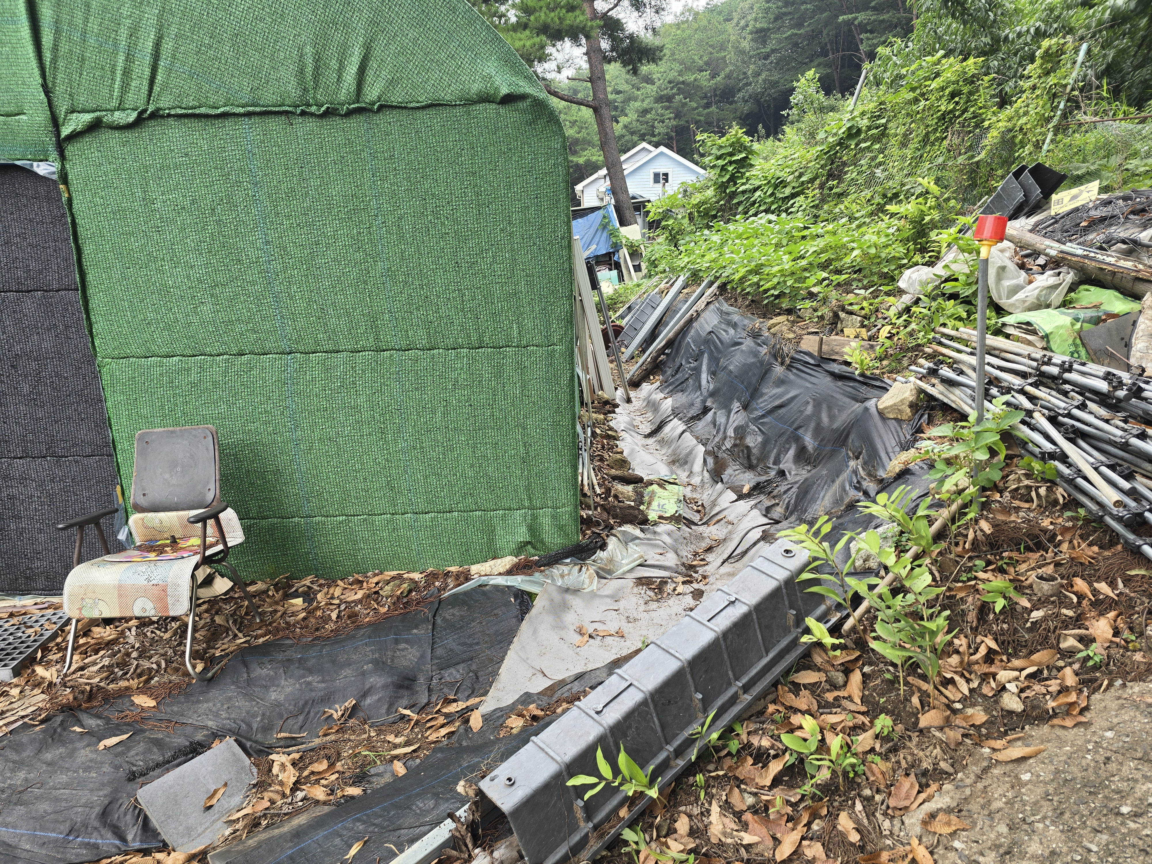 하우스 안 쪽으로 빗물이 들어와