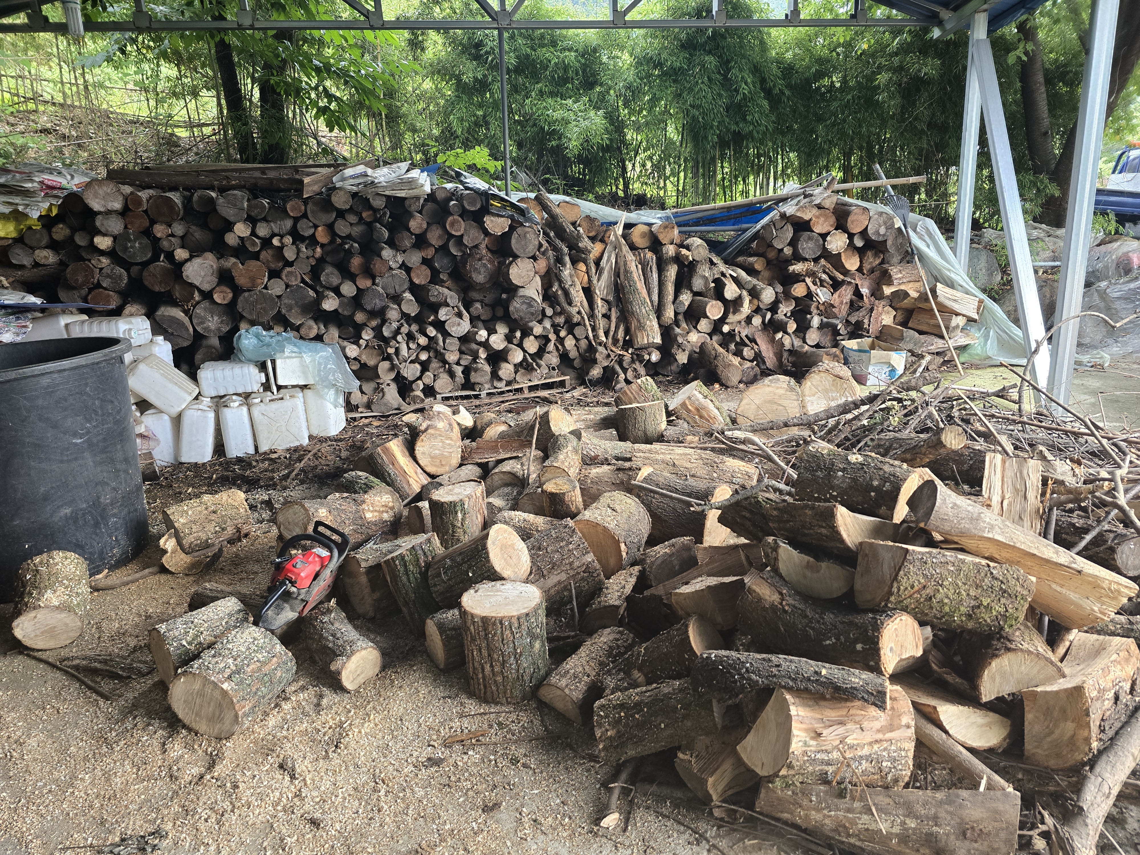 나무길이가 너무 길어 유압도끼 안에 들어가지 못해