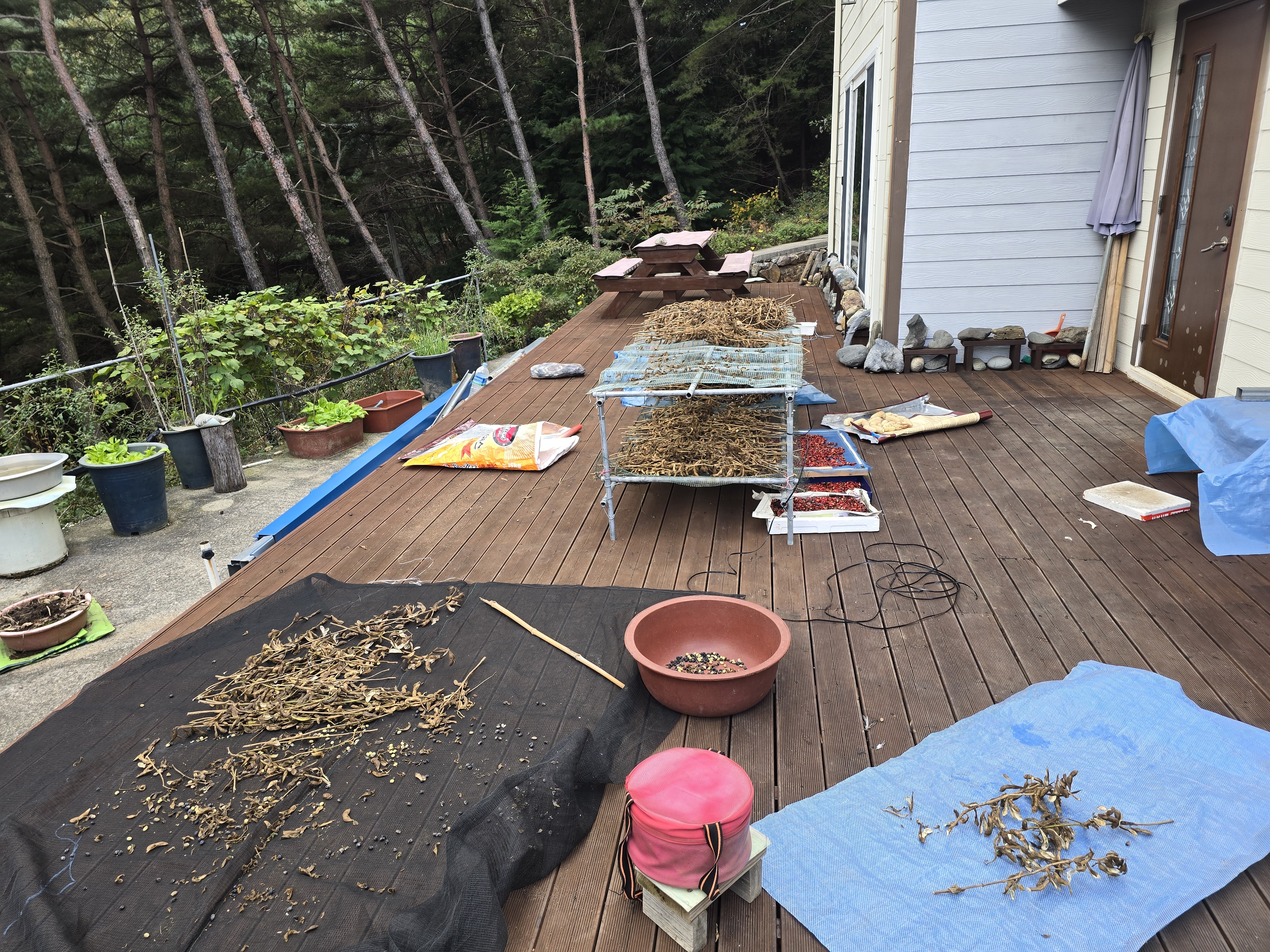 데크에 널어놓았던