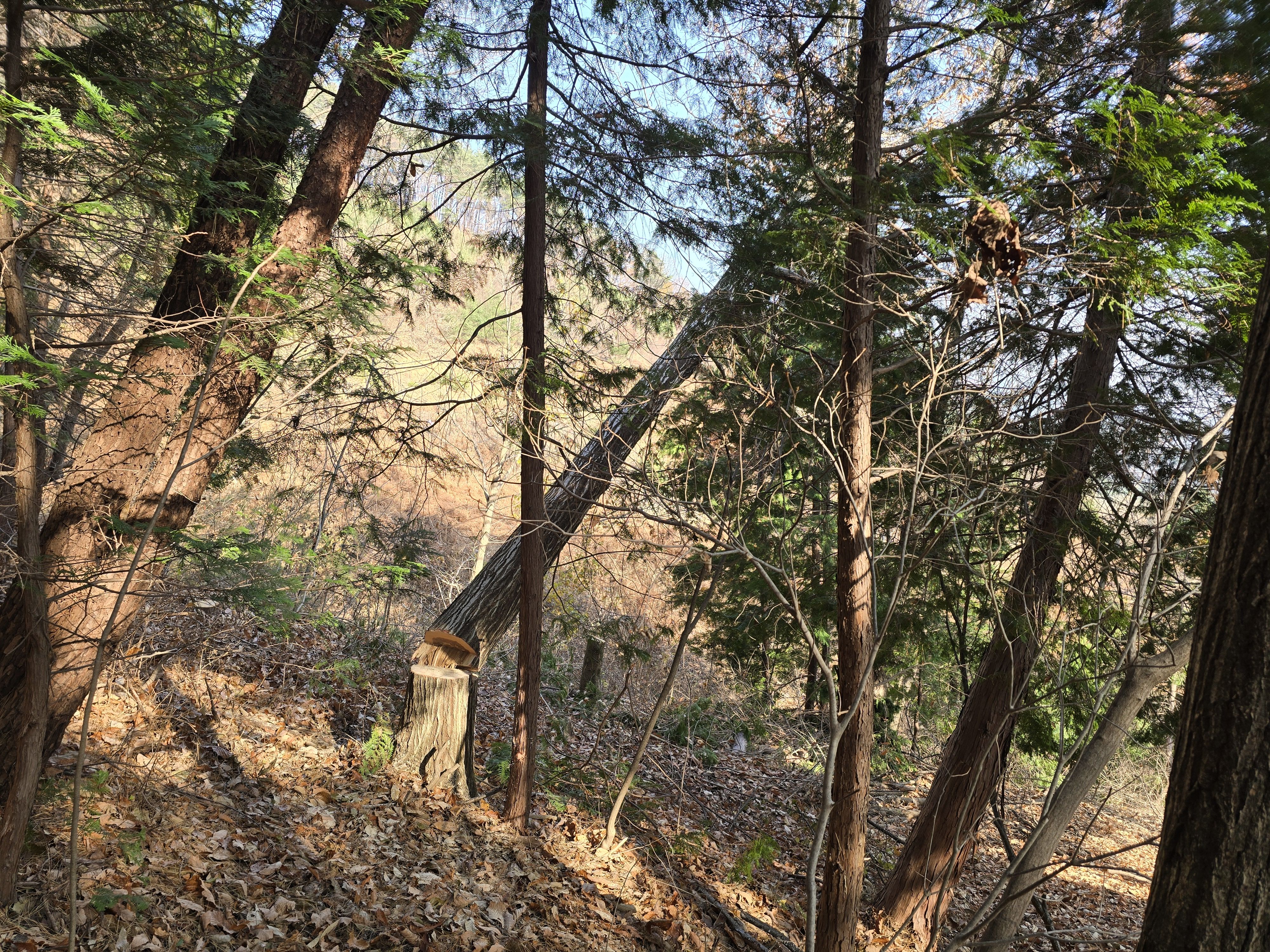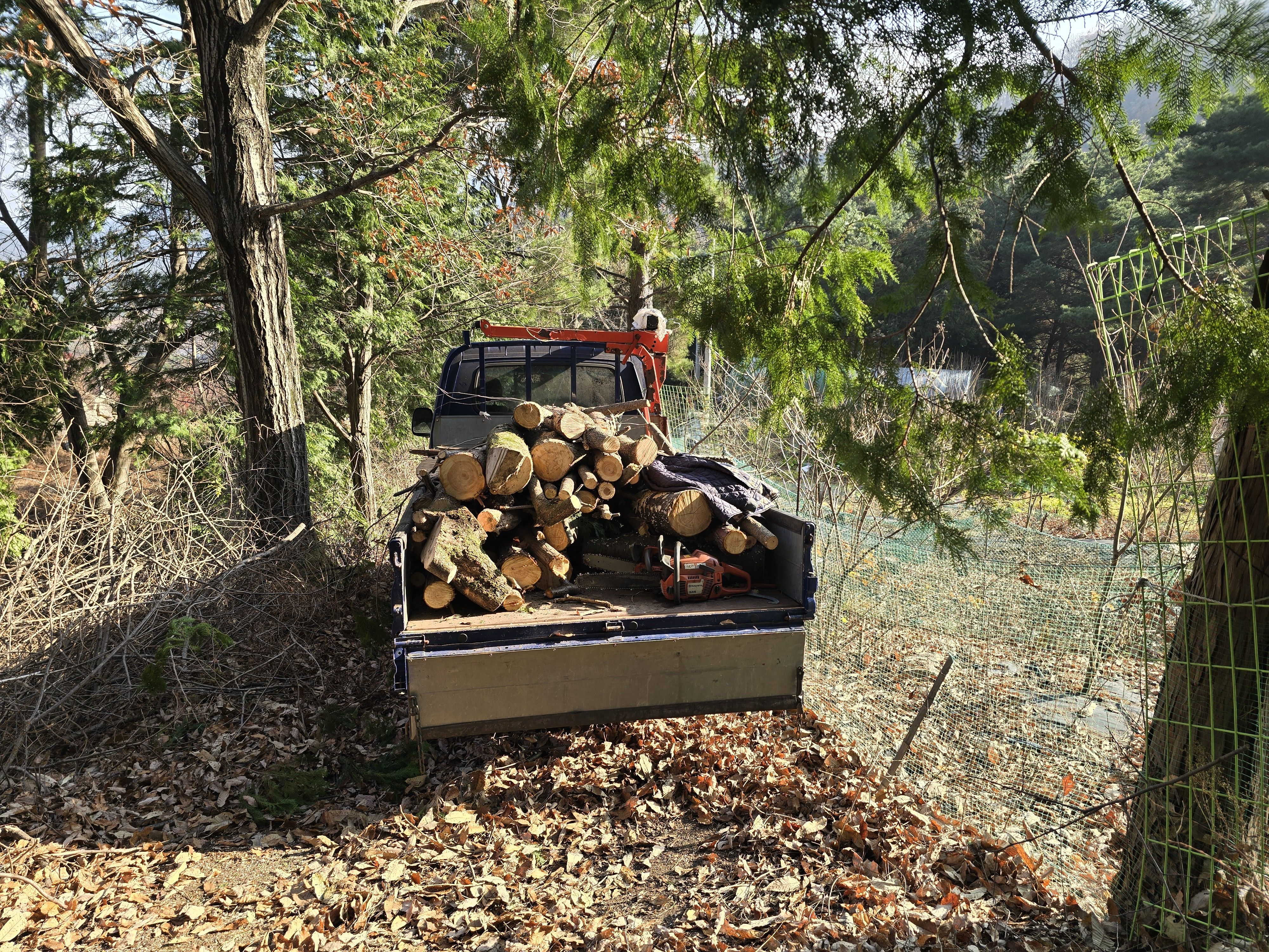 생나무는 잘라서 적재를 하고