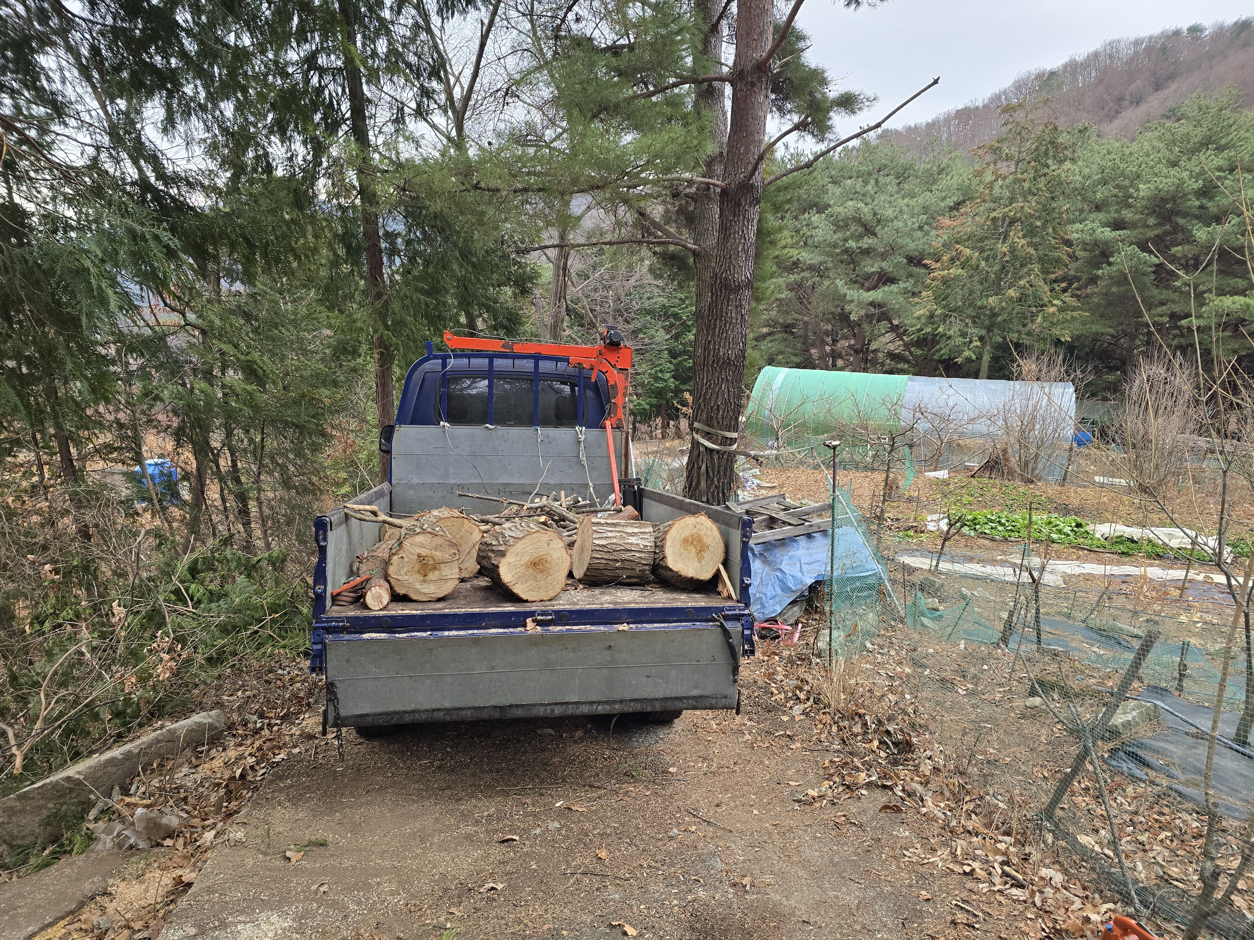 나머지 땔감을 트럭에 싣고